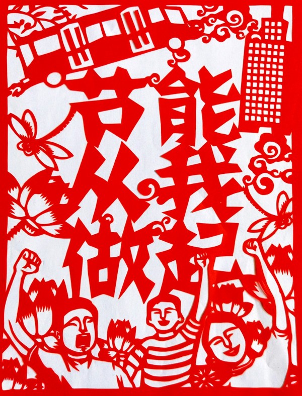 吴乐天刻纸:节能降碳 你我偕行