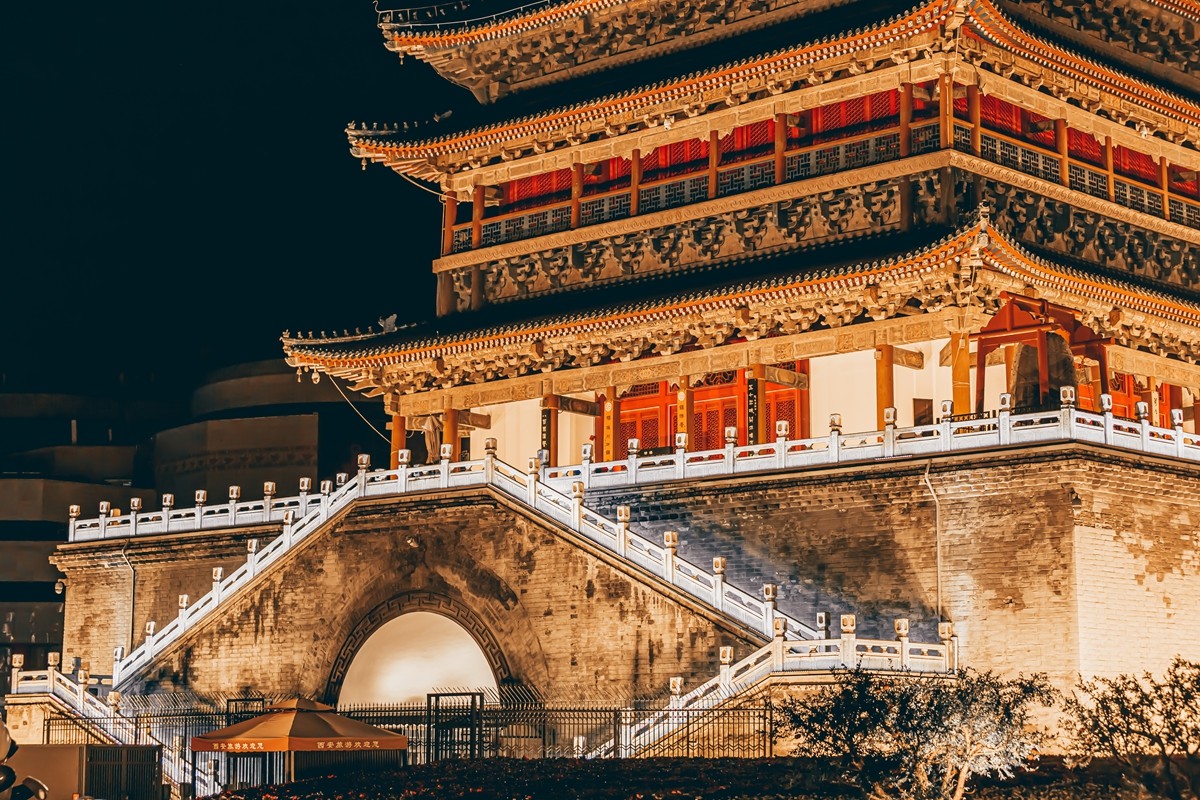 西安钟楼坐落于西安市明城墙内四条大街交汇处,是中国现存规模最大、生涯最完整的钟楼。它如一枚沉稳的印章,稳稳盖在西安的都会心脏,成为街巷间最醒目的标识。当暮色四合、华灯初上,钟楼就褪去了时光的厚重,暖黄灯光从窗棂间漫溢,为青砖镀上温柔金边,檐角原本威严的兽首,在夜色里也添了几分憨态。驻足楼下,仰面可见鎏金宝顶在灯影中微光闪灼,滔滔车流围绕其行,模糊间便能触遇到这座城从长安到西安的千年流转。(小庄矿 雷智勇)